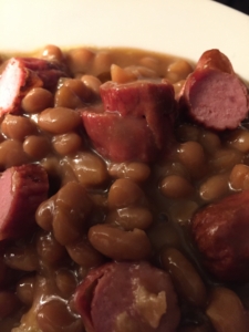 Franks & Beans are a comfort food for both my husband and I. We both have fond memories of eating it as children and IN the same way, which is cool.