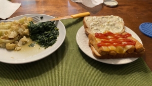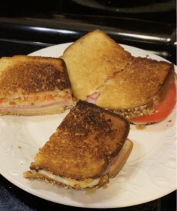 Grilled cheese with ham & tomato. This is another quick meal that is very satisfying. If you are really hungry, put on some soup to go with it. Tomato works fabulously but any soup you prefer makes it a filling meal. I keep extra soup leftovers in the freezer but we have canned as well.DO NOT skimp on the cheese. Top and bottom layers of cheese is a must.