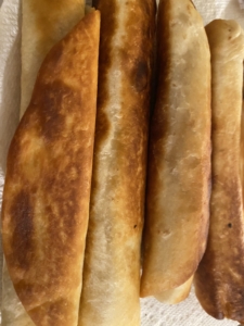 Just about everyone in the house has loved these from the day I tried making them. I fried them at first, quickly realizing that I didn’t have the patience or time to make them this way. Then I just rolled them in oil, sprinkled more on top and baked them in a pan at a high heat. And yes, my favorite saying, “voila”. 🙂All you need is a rotisserie chicken (pulled) or leftovers, softened cream cheese, salsa and/or a can of chilis and a little bit of grated Mexican cheese. You can also make these with ham instead of chicken. I put all the ingredients in a bowl, roll up in a Giant burrito with some more shredded cheese. I put some oil in a baking dish and roll each one around in the oil and line up in the pan.
